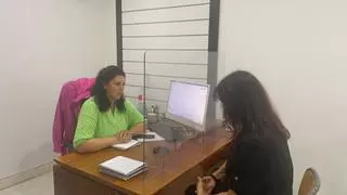 Una usuaria de Amigos de Galicia siendo atendida por su orientadora laboral. / FdV