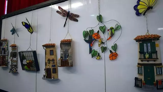 No faltan piezas de cristalería, como lámparas y objetos decorativos, hechas con láminas de vidrio de diferentes colores y texturas. Esta muestra puede visitarse hasta finales de mes.