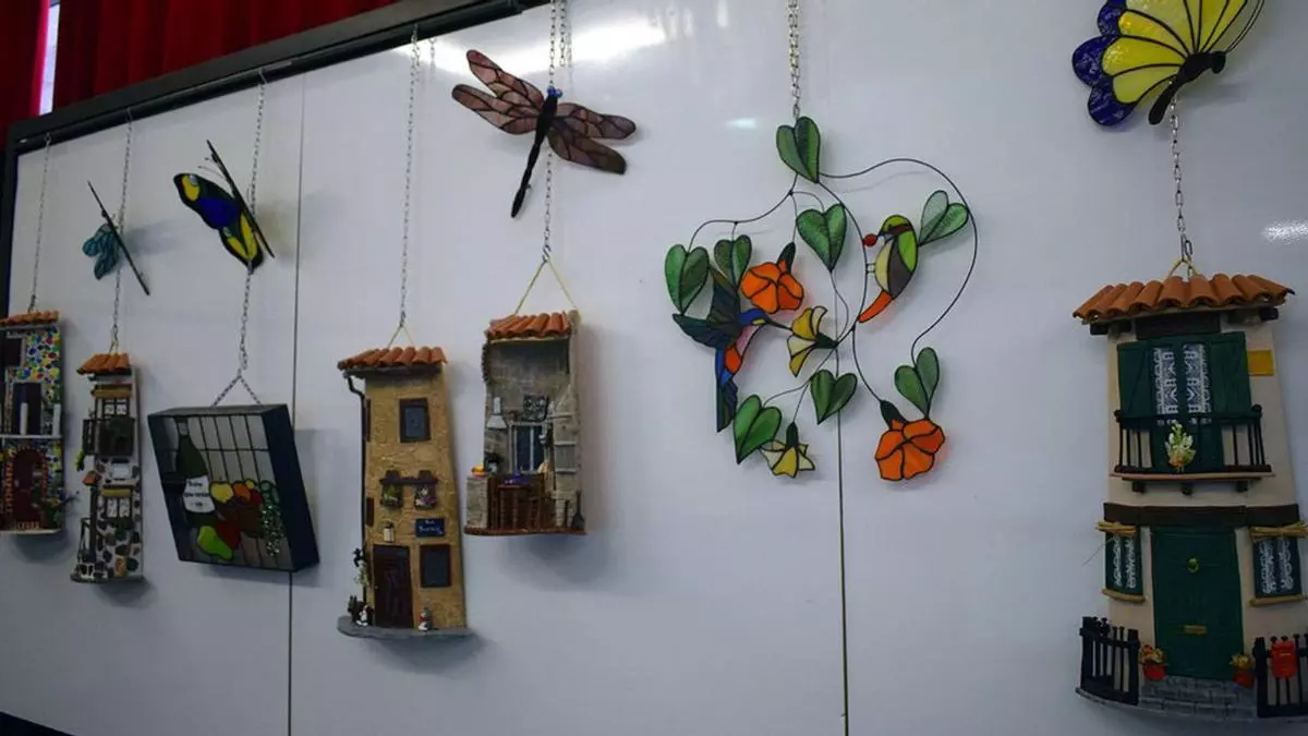 También pueden verse «prendas elaboradas con técnicas como calceta o ganchillo en el taller de labores», además de tejas elaboradas con diferentes técnicas de modelado, maquetismo y pintado.