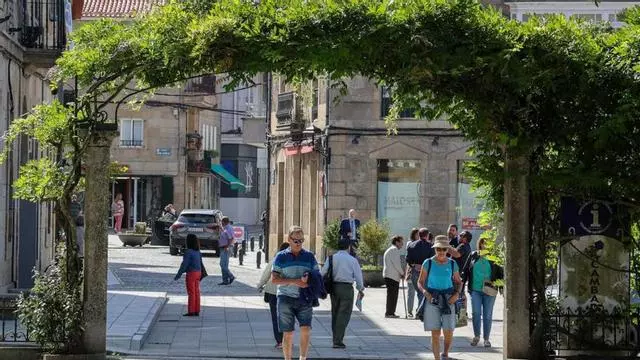 Un grupo de turistas recorre el corazón del casco histórico de Cambados. | Iñaki Abella