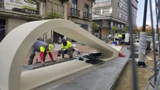 Además, se está finalizando el revestimiento de madera del elemento central de la calle, de forma curva, que puede utilizarse como elemento lúdico, al igual que las figuras geométricas empleadas en O Piñeiriño o como zona de descanso.