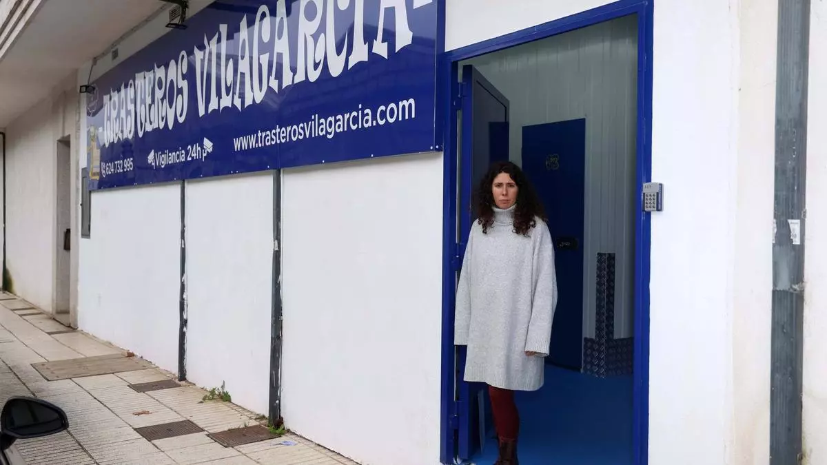 Paula Barreiro, ayer a las puertas de su negocio de «self storage» de Vilagarcía. / Noe Parga