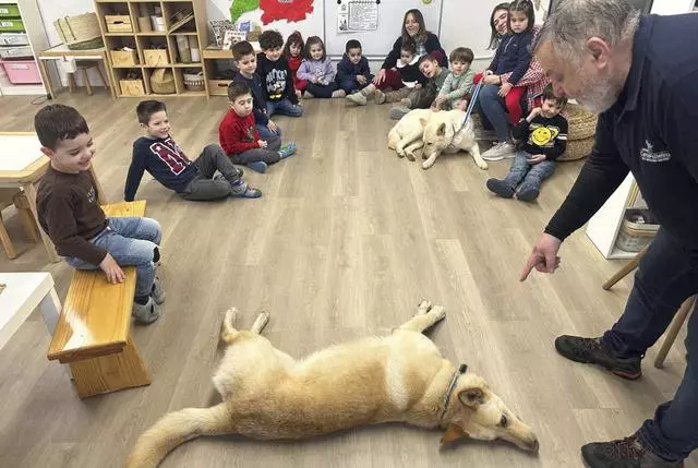 Perras como «Lenda» y «Xesta» hicieron las delicias de los niños, compartiendo momentos en el aula y realizan demostraciones prácticas de lo que son capaces de hacer, «como saludar o contar hasta tres».