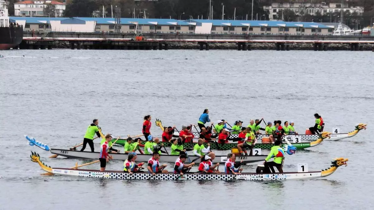 La pista de 200 metros paralela al dique Barrié estaba lista poco después de las diez de la mañana. Las condiciones del meteo, correctas, con el cielo encapotado, ni una brizna de viento y la tensión latente en las 46 tripulaciones. Con un retraso de veinte minutos comenzaba la competición mixta de veteranos, en la que llegaba la primera victoria de Asturias Boat, seguido de Pontevedra, As Pontes, Cabanas, Aldán, Auga de ACoruña y el Olívico de Vigo.