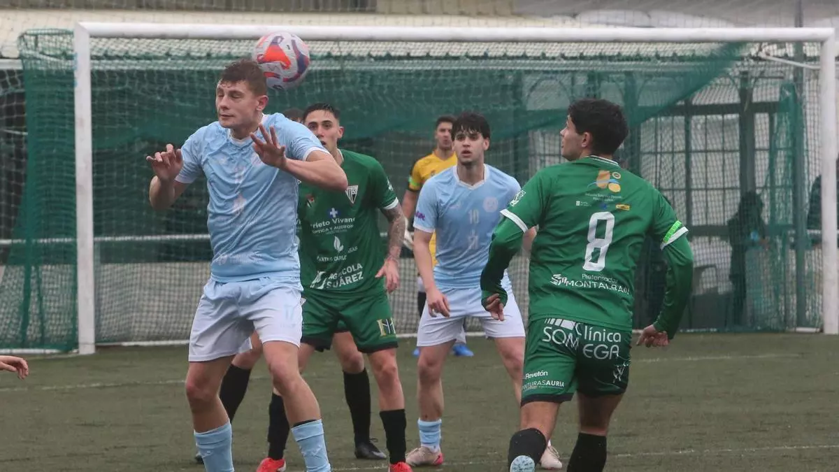 Millán cabecea un balón en una acción del encuentro de ayer entre el Beluso y el Antela. / Santos Álvarez