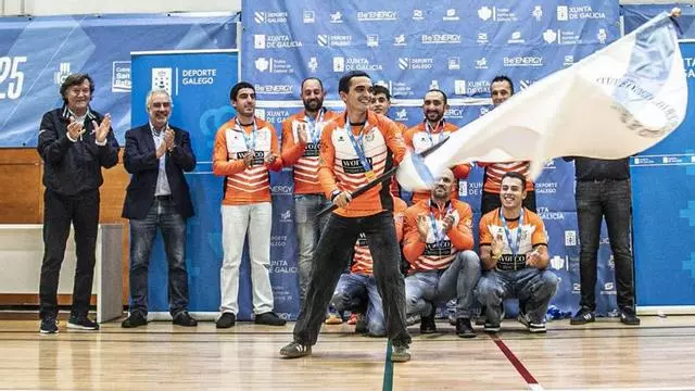 El club redondelano ondea la bandera que le acredita como campeón gallego. | FdV