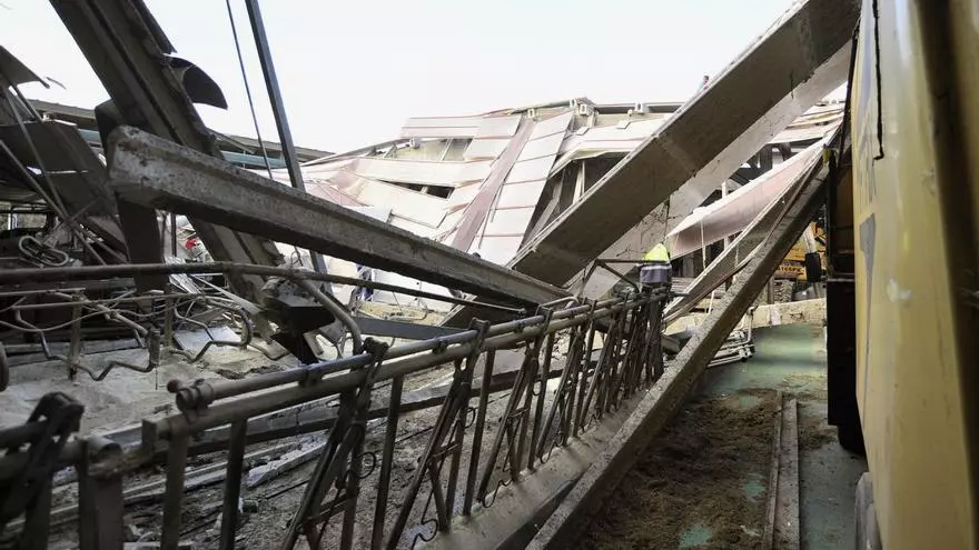 Una máquina operada por un trabajador golpeó una columna y la cubierta colapsó
