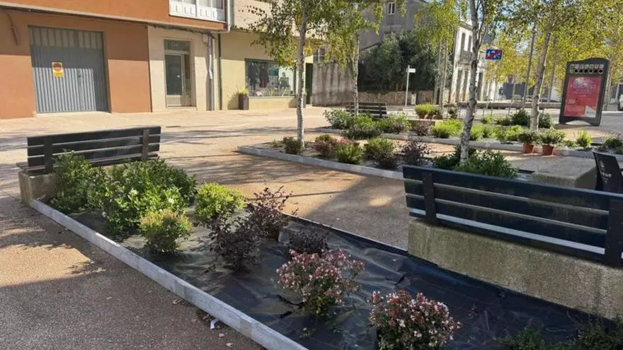 Las zonas verdes de la Plaza da Feria comienzan a mostrar estos días el avance en la ejecución del plan de mejora de las zonas ajardinadas del casco urbano. En los próximos días se incorporará corteza de pino para embellecer el conjunto y ayudar a evitar la proliferación de malas hierbas.