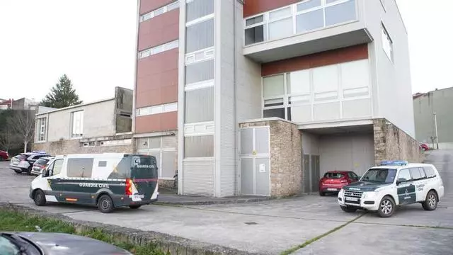 Vehículos de la Guardia Civil trasladan detenidos a los juzgados de Lalín. | Bernabé