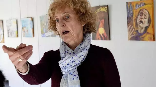 Ginette Durr reside en la parroquia de Goiás desde hace 12 años y ya expuso en dos ocasiones anteriores en la cabecera dezana: en 2015 en una colectiva en el centro comercial Pontiñas y en 2018 en el Casino con Huella en el tiempo. En realidad, los conflictos bélicos y su repercusión en la infancia forman parte de la creación de esta pintora desde hace más de 40 años. De 1982 procede un óleo que recrea la guerra entre Irán e Irak, en el que recrea al ayatolá Jomeini «como una muñeca mecánica, cuya imagen aparece repetida en varias pancartas».