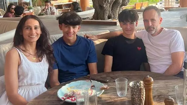 El estradense David Goldar, junto a su familia, en Dubai. / CEDIDA