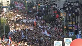 En total, los sindicatos calculan en 350.000 el número de gallegos que ayer mostraron su indignación en las diferentes manifestaciones convocadas. El acto central de A Coruña contó con la participación de los secretarios generales de UGT, José Antonio Gómez, CIG, Suso Seixo, y CC OO, Xosé Manuel Sánchez-Aguión, que reclamaron que las medidas del Gobierno se sometan a referéndum. Estos advirtieron de que, en caso contrario, las movilizaciones irán in crescendo y desembocarán en una nueva huelga general.