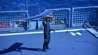 Despegue manual del dron de Marine Instruments desde un barco de la Armada / M.I.