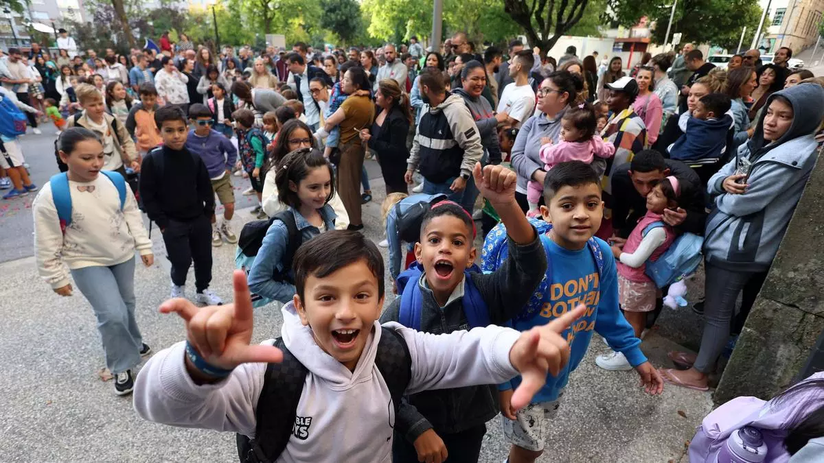Escolares pontevedreses en su regreso a las aulas este curso en Barcelos. / Gustavo Santos
