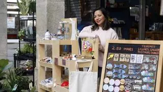 Una trabajadora autónoma de un comercio en la plaza de Abastos de Pontevedra / Gustavo Santos