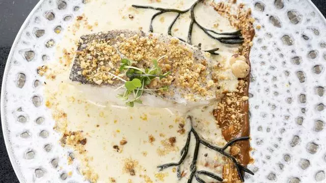 Merluza con avellanas, la receta de Emilia Pardo Bazán adaptada por la cocinera Carla Álvarez, del Restaurante Matices (Moaña), para que triunfes esta Navidad combinando literatura y gastronomía en tu mesa. / Cedida - Pereira Productos del Mar