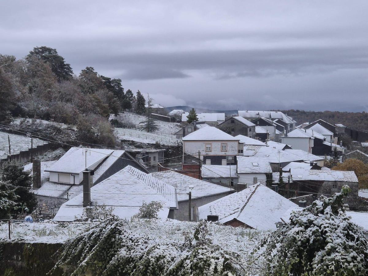Con la cota situada en 900 metros durante la jornada de este martes, la nieve hizo acto de presencia en zonas de montaña de la provincia de Ourense. En el Macizo Central, los copos cuajaron en San Xoán de Río y dibujaron una estampa invernal. También llegó a puntos como Montederramo y Chandrexa de Queixa, obligando a extremar la circulación en las carreteras locales.