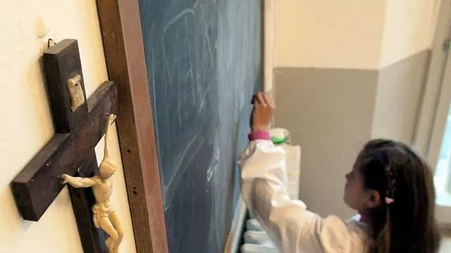 Un aula con un crucifico en una imagen de archivo. / FR4ANCO SILVI / Efe
