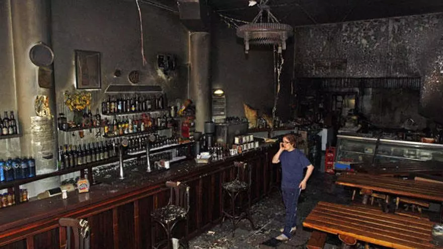 Estado en el que quedó el interior de "El Orensano" tras el incendio. // Marta G. Brea