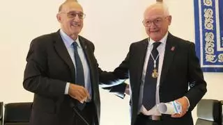 El rector Reigosa (i.) entrega la medalla a Vidal Andión. | A. Villar