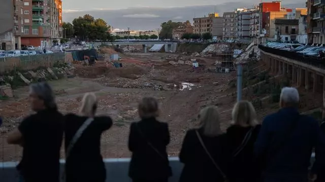Varias personas hacen una cadena humana para homenajear a las víctimas de la dana, en la Rambla del Poyo, a 26 de octubre de 2025, en Paiporta / Jorge Gil / Europa Press