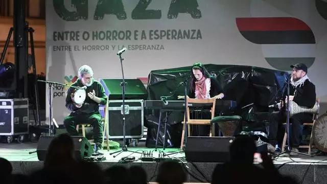 El festival Música y palabras para Gaza, ayer, en Porta do Sol. | Pablo H. Gamarra