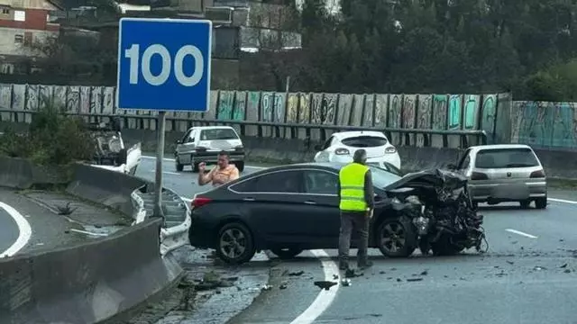 Un aparatoso accidente ocurrido en la tarde de este lunes en la autovía VG-20 de Vigo se ha saldado sin heridos pese a volcar uno de los tres coches que se vieron implicados en el suceso.