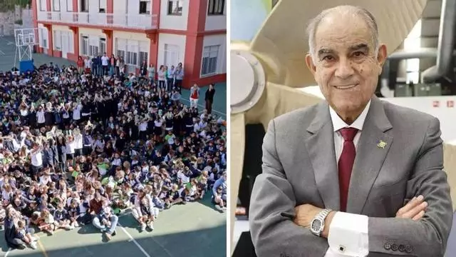 Alumnos en el patio del Colegio Carmelitas de Vigo y José García Costas / Jose Lores / Alba Villar