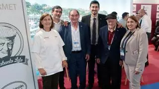 El stand del frigorífico Rosa de los Vientos vivió un emotivo día ayer, con la presencia de uno del patriarca de la familia, el centenario Manuel González. En la fotografía, y desde la izquierda: Mercedes González, Manuel Otero González, Manuel Otero Patiño, Miguel Otero González, Manuel González Rúa y Pilar Otero González. «Somos una familia totalmente vinculada a la pesca», explicó esta última, que también es la presidenta de Anmupesca.