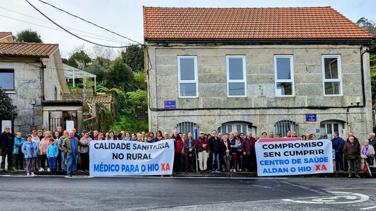 La concentración de ayer en O Hío para exigir la reapertura del consultorio de O Hío. / Gonzalo Núñez