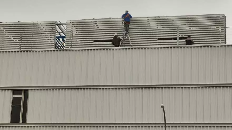 Trabajadores en el tejado del nuevo centro de salud. / | Santos Álvarez