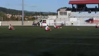 Momento en el que los jugadores el Alondras protestaron por el retraso de las obras. / Santos Álvarez