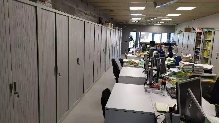 Oficina en los juzgados de Ourense, sin medidas de seguridad y distancia. // FdV