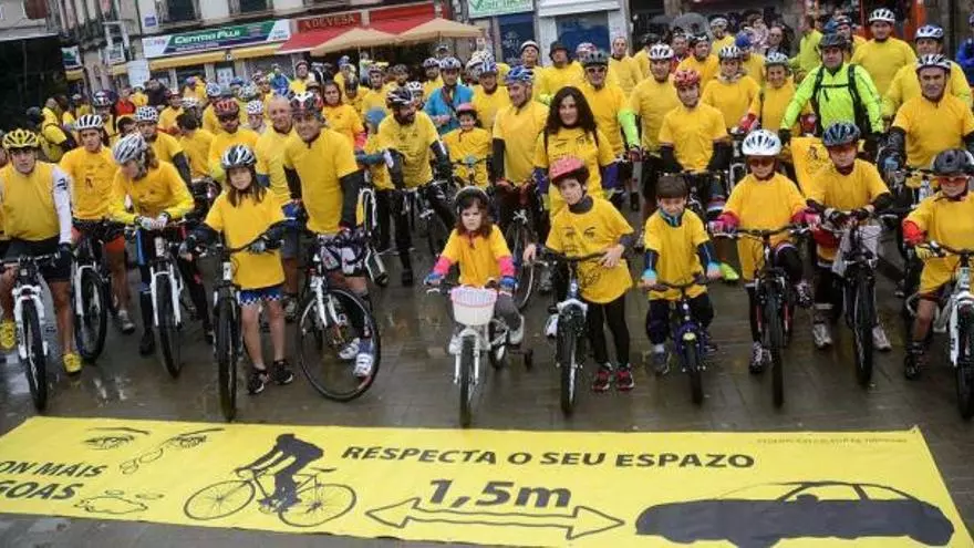 "Más de un muerto a la semana en las carreteras es un porcentaje demasiado alto" . Con esta realidad como telón de fondo, la Federación Gallega de Triatlón (Fegatri) convocó ayer una concentración para concienciar a los conductores sobre la necesidad de "respetar" el espacio de seguridad cuando adelantan o tienen cerca a un ciclista.