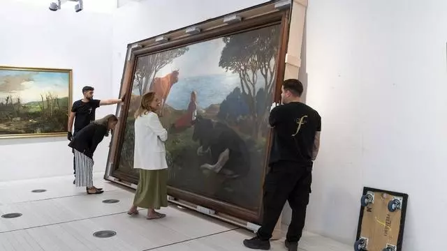 El cuadro fue instalado este jueves en su nueva localización, en la que compartirá espacio con otras obras de Lloréns y de otros contemporáneos como Fernando Álvarez de Sotomayor, Ovidio Murguía, Germán Taibo y Jenaro Carrero. De este último autor, uno de los representantes de la Xeración Doente, se incorporan también a la sala tres retratos: «Anciá con neno no colo», «Retrato de Josefa González, esposa do pintor» y «Retrato da curmá do pintor».