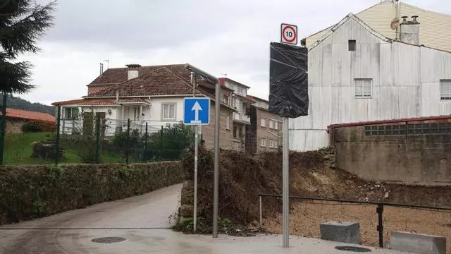 Una parte de la calle A Santiña tras las obras, con la nueva señal tapada hasta el lunes. / Gustavo Santos