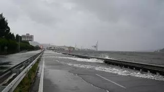 La pleamar se registraba a las 4.00 horas, pero el temporal en el mar ha generado olas que mantenían cortada la PO-11 horas después, lo que llevó a la Guardia Civil a establecer desvíos en el nudo de Mollavao y en la rotonda de Praceres, para evitar el paso de los coches por los carriles inundados.