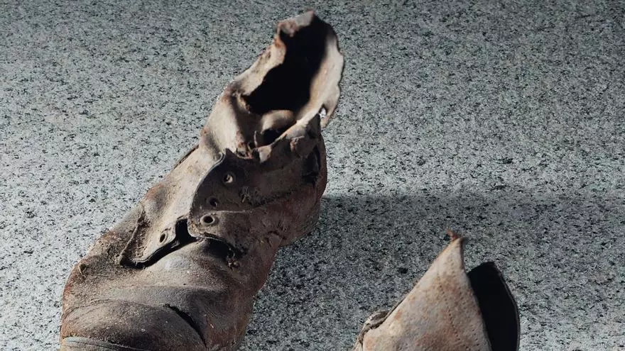 O Museo da Paz de Hiroshima contén uns 21.000 obxectos de vítimas do ataque nuclear de EEUU contra a cidade na II Guerra Mundial. Un deles son estas botas. Portábaas un neno. El e elas protagonizan un poema en «La espera», que Kalandraka vén de presentar na Casa Asia, en Madrid. A foto é de Tadashi Okakura. |