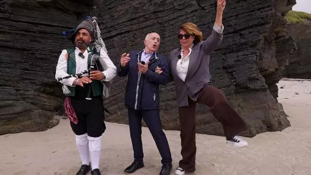 Gayoso e Belinda, na praia das Catedrais, de baile coa música da man dun gaiteiro. | CRTVG
