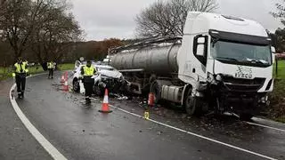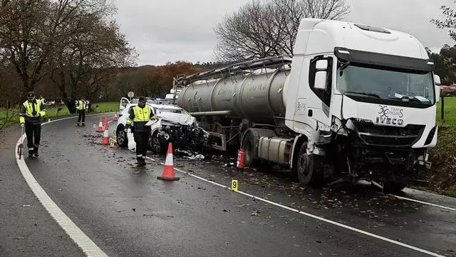 Dos personas perdieron la vida en un accidente de tráfico que tuvo como marco Arzúa. Ocurrió en el kilómetro 67 de la carretera nacional N-547, tras una colisión frontal entre un camión y un coche. Precisamente, las dos víctimas eran las ocupantes del segundo vehículo. Los fallecidos son un hombre, iniciales A.M.C, y una mujer, J.B.S., ambos de 72 años.
