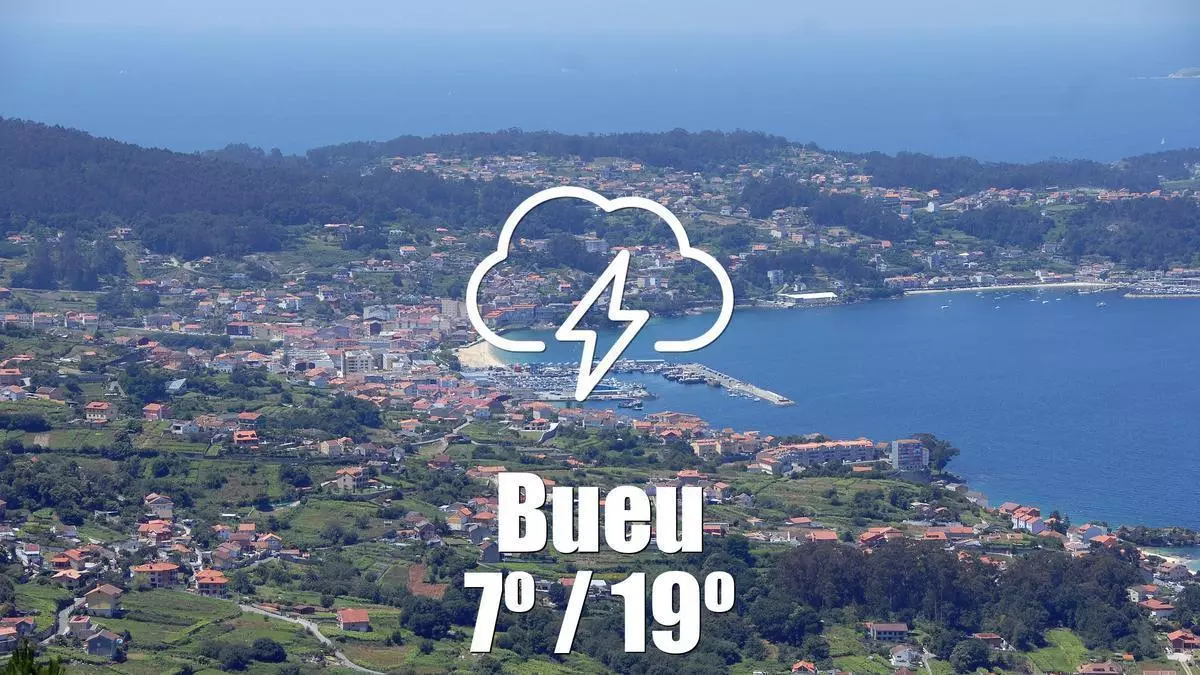 Hoy, 3 de marzo de 2026, Bueu se prepara para un día mayormente cubierto, con la posibilidad de tormentas y lluvias escasas en las primeras horas de la mañana. A partir de la medianoche, el cielo estará cubierto con tormenta y lluvia ligera, con una probabilidad de precipitación del 45% entre la 1 y las 7 de la mañana. Se recomienda a los residentes que estén atentos a las condiciones meteorológicas, ya que podrían presentarse chubascos breves.